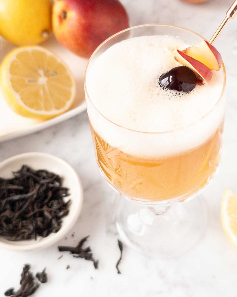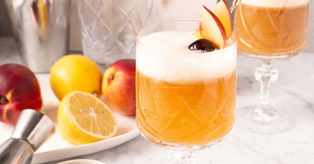 Alcohol-free and bursting with flavour, this Almond Peach Sour will be your go-to all season long!