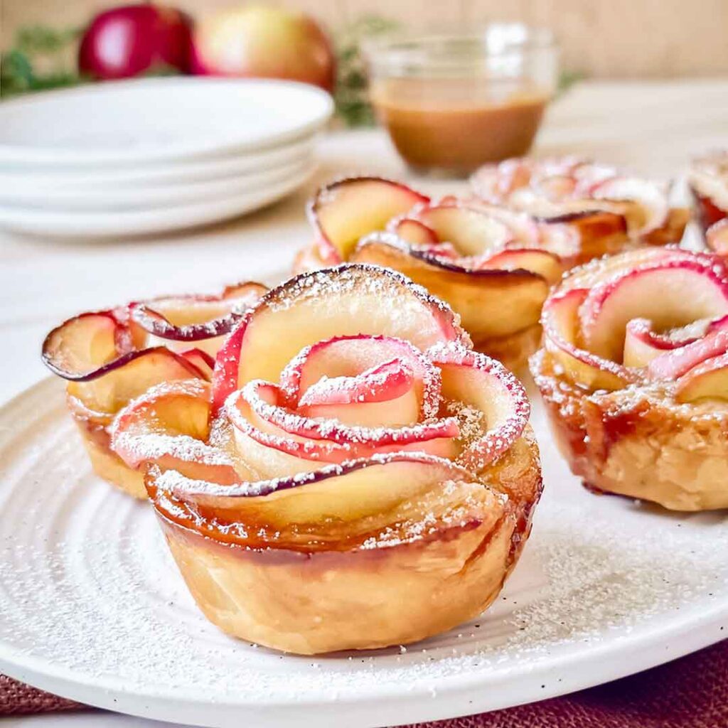 Make your holiday dessert table unforgettable with these Almond Cinnamon Apple Rose Pastries.