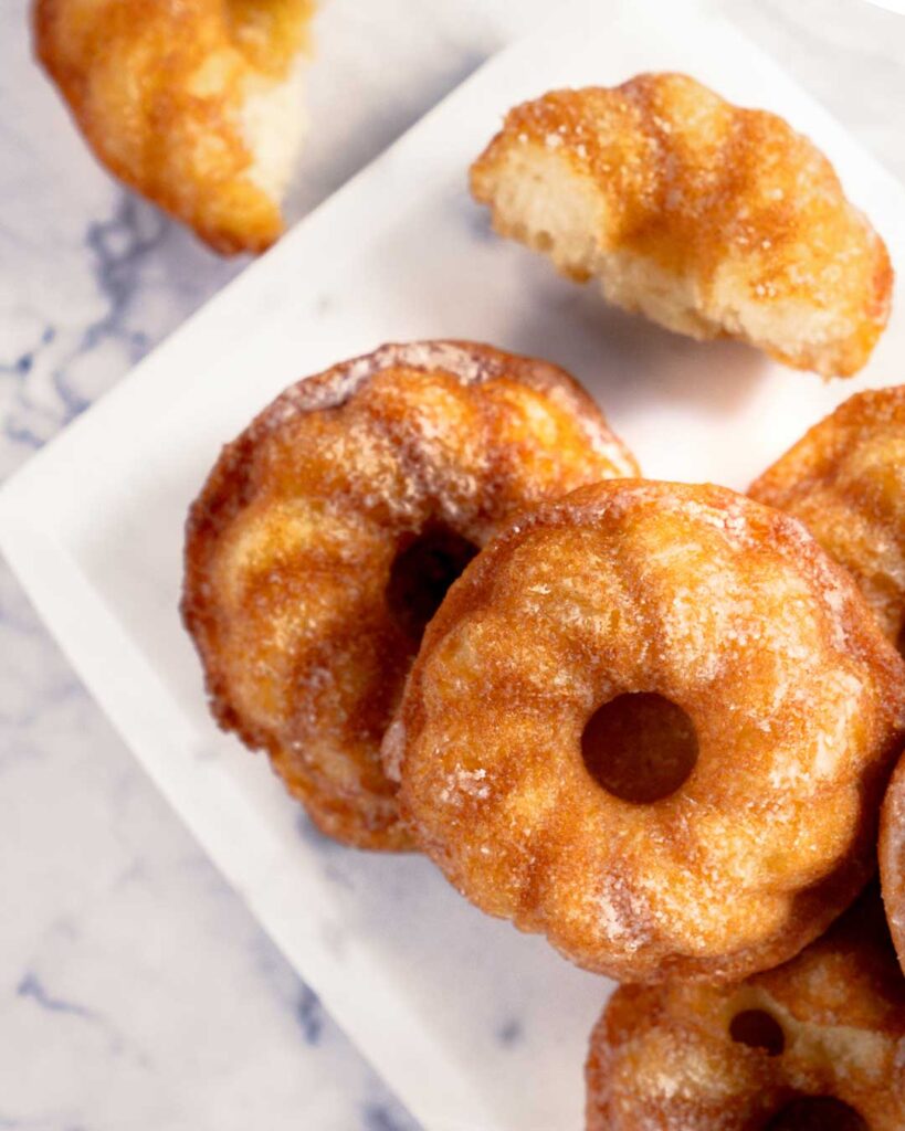- Dip doughnuts in flavoured butter and then sprinkle generously with icing sugar. These donuts are best enjoyed the day they are baked.