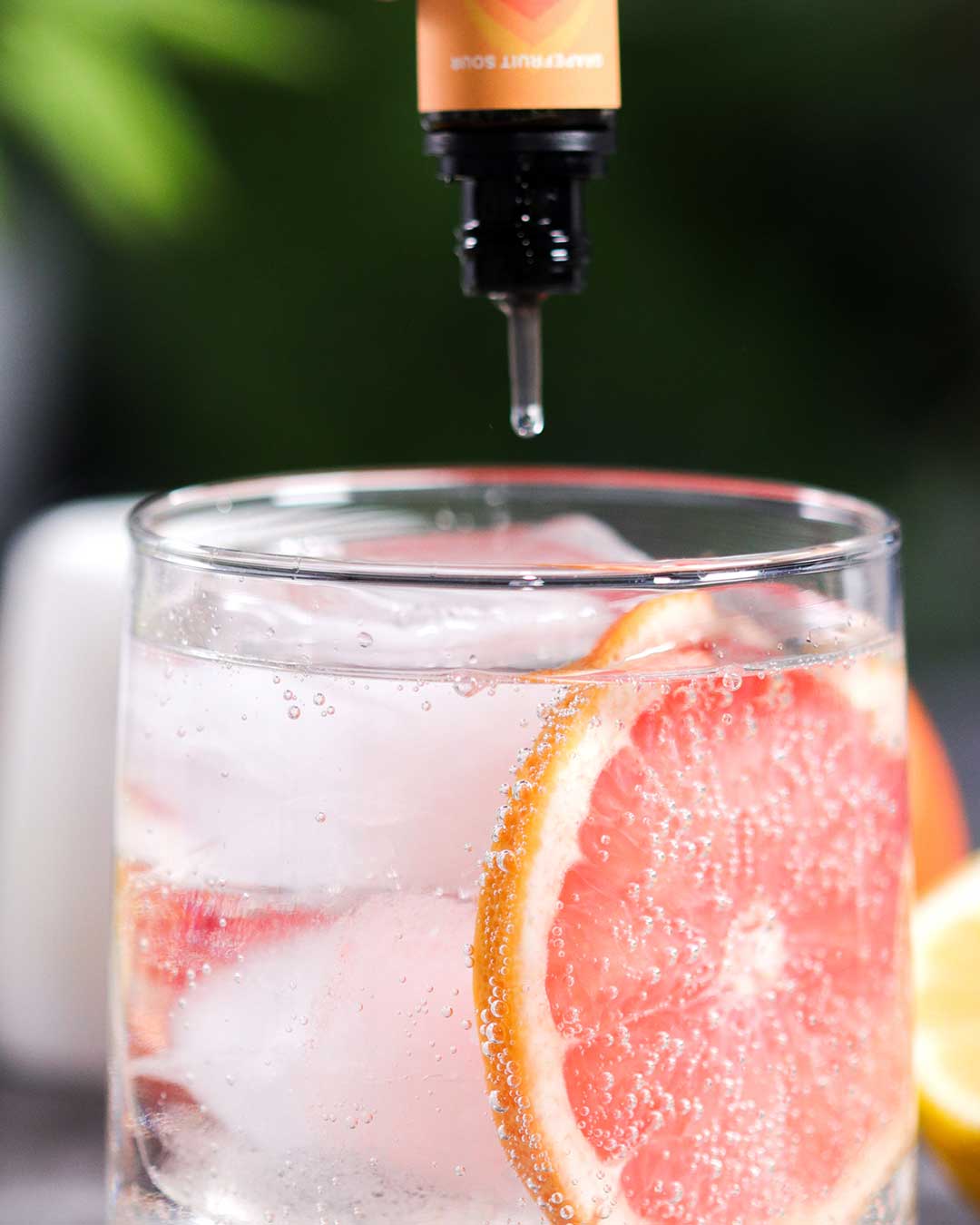 - Fill a tall glass with ice. Add soda water. Add simple syrup or sweetener of choice if using, add Grapefruit Sour flavouring. Stir well to combine flavours. Garnish with thinly sliced grapefruit and mint if desired.