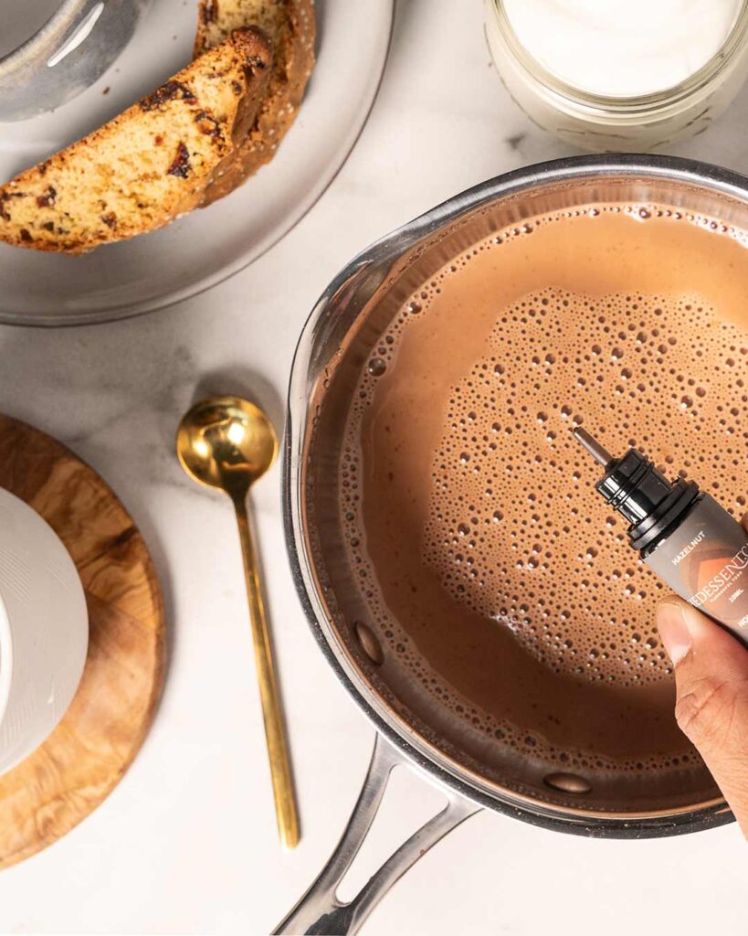 Everything about this recipe is homemade, so any of your favourite flavours can be used. We used hazelnut and caramel for this one, but feel free to mix it up and make your own perfect cup with this easy and versatile recipe!