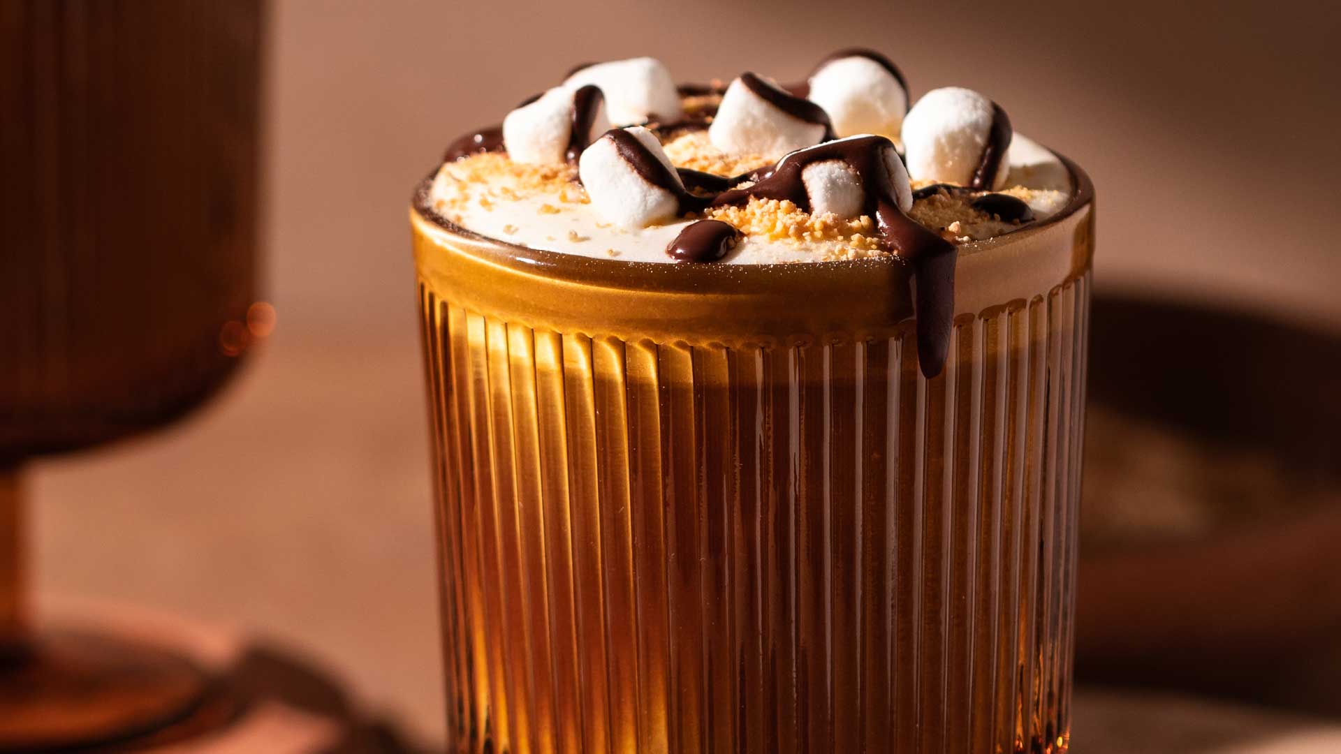 - If using garnish, top each coffee with marshmallows, graham crumbs, and chocolate syrup. Sit back and enjoy the cozy flavour of S’mores!