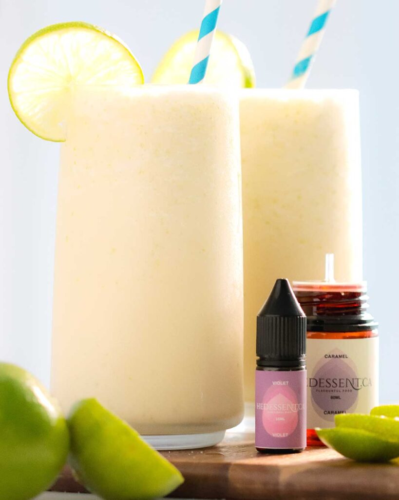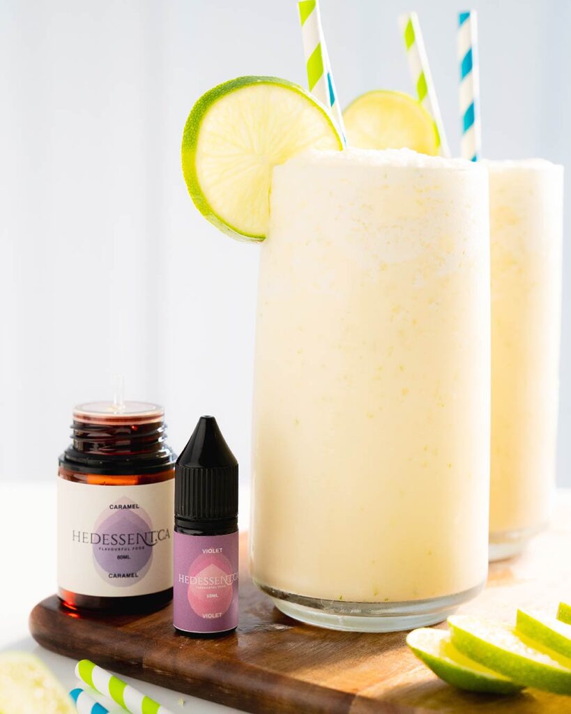 Our Caramel flavour enhances the vanilla ice cream, adding a rich depth. And the Violet paired with citrus is a match made in heaven! It’s floral but not overpowering, giving a nice balance to the limes.