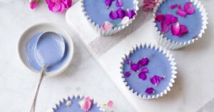 These lovely little chocolate brownies are as beautiful as they are delicious. Decorative edible flowers...